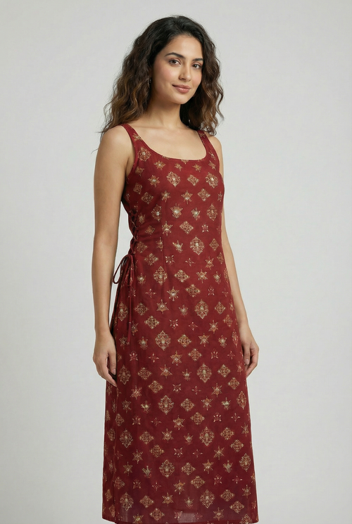 Maroon Ethnic Tie-Up Kurti - Rayon Cotton