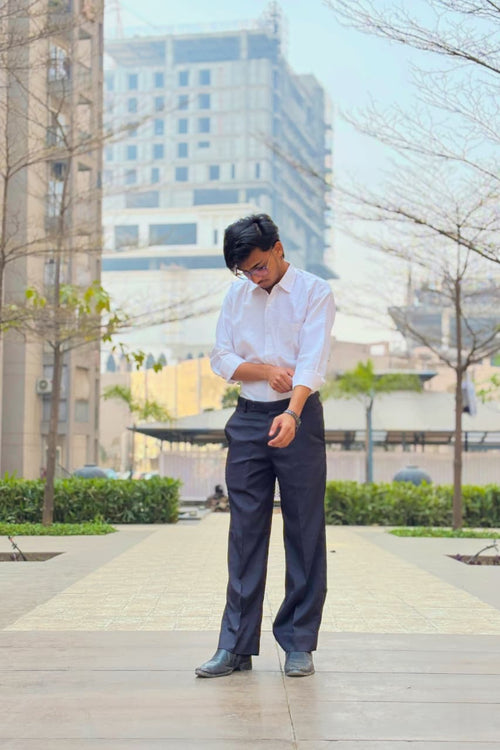 AVYRON - Men’s Premium White Shirt & Navy Blue Formal Pant Combo – Slim Fit Office Wear Set | Elegant Business Outfit for Men