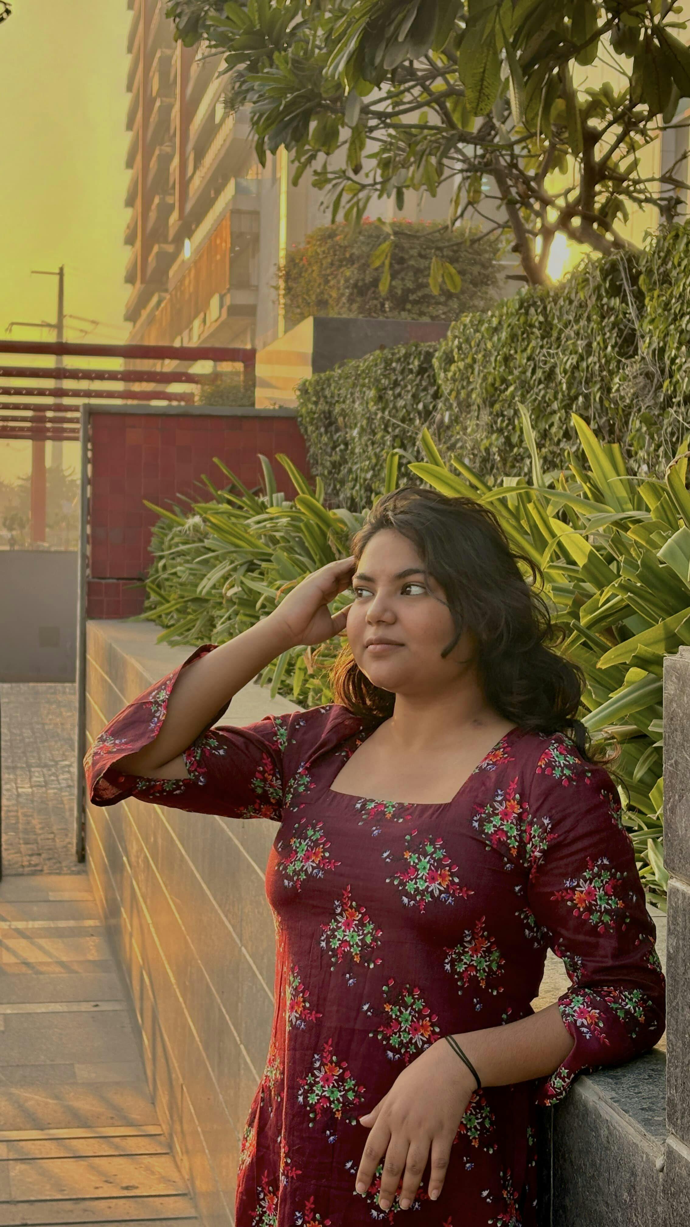 All-over delicate floral print kurti ko fresh, stylish aur eye-catching banata hai. Straight long silhouette body ko flattering look deta hai aur daily wear, college, office ya casual outings ke liye ideal hai.